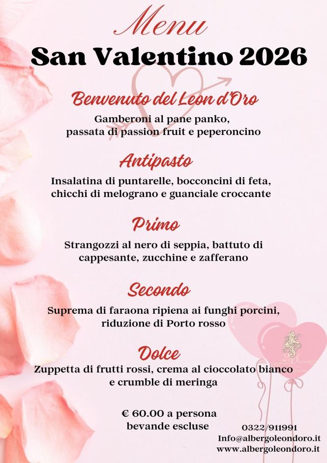 Guardate la gallery qui sotto per conoscere i costi dei pacchetti e il menu che sarà applicato la sera del 14 febbraio 2026.